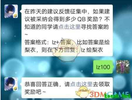 - 在昨天的建议反馈征集中,如果建议被采纳会得到多少QB奖励