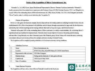 任天堂宣布与 Embracer Group 达成协议,收购位于迈阿密的游戏开发商 Shiver Entertainmen...