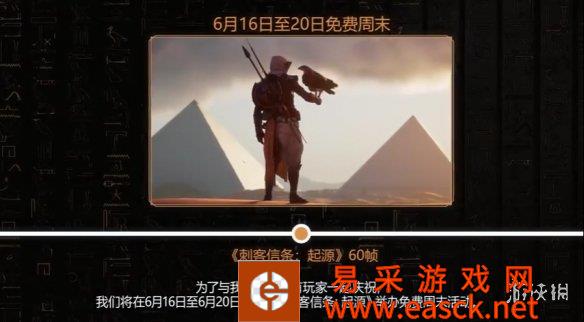为了庆祝《刺客信条》系列15周年,育碧宣布将于6月16-20日开启《刺客信条:起源》的免费周末,活动...