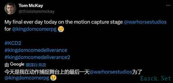 天国:拯救系列中饰演亨利的演员汤姆·麦凯近日在社交媒体上发布了一则消息,表示自己与战马工作...