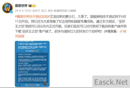 6月6日,魔兽世界官方微博宣布,魔兽世界国服回归删档技术测试将于6月11日开启。此次先行开启测...