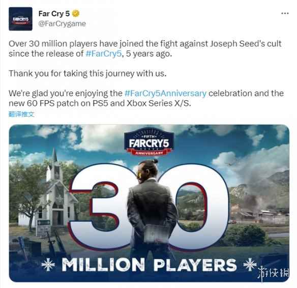 育碧《孤岛惊魂5》官方推特宣布,本作到达了一个新的里程碑,目前已经拥有超过3000万玩家。...