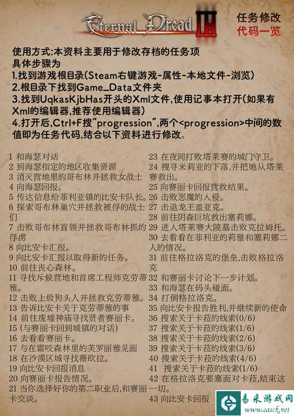 - 永恒恐惧3主线任务代码大全 任务修改方法