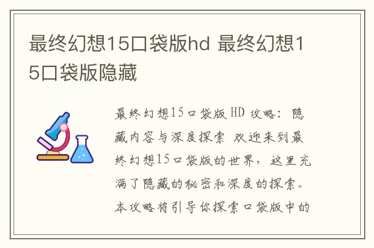 最终幻想15口袋版 HD 攻略:隐藏内容与深度探索 欢迎来到最终幻想15口袋版的世界,这里充满了隐...