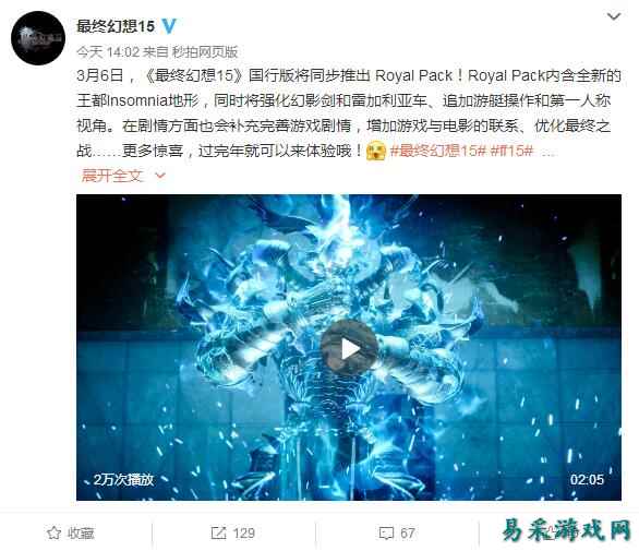 - 《最终幻想15》皇家版国行来袭 3月6日全球同步上线