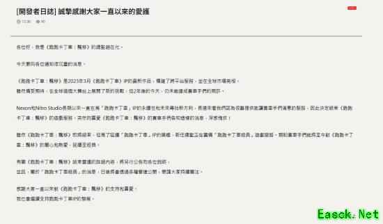 AI对话状态码:BadGateway前不久,NEXON通过《跑跑卡丁车:漂移》台服和韩服官网宣布,游戏即将停运,...