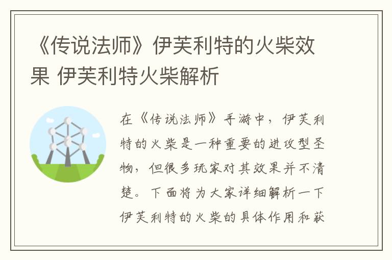 在《传说法师》手游中,伊芙利特的火柴是一种重要的进攻型圣物,但很多玩家对其效果并不清楚。下...