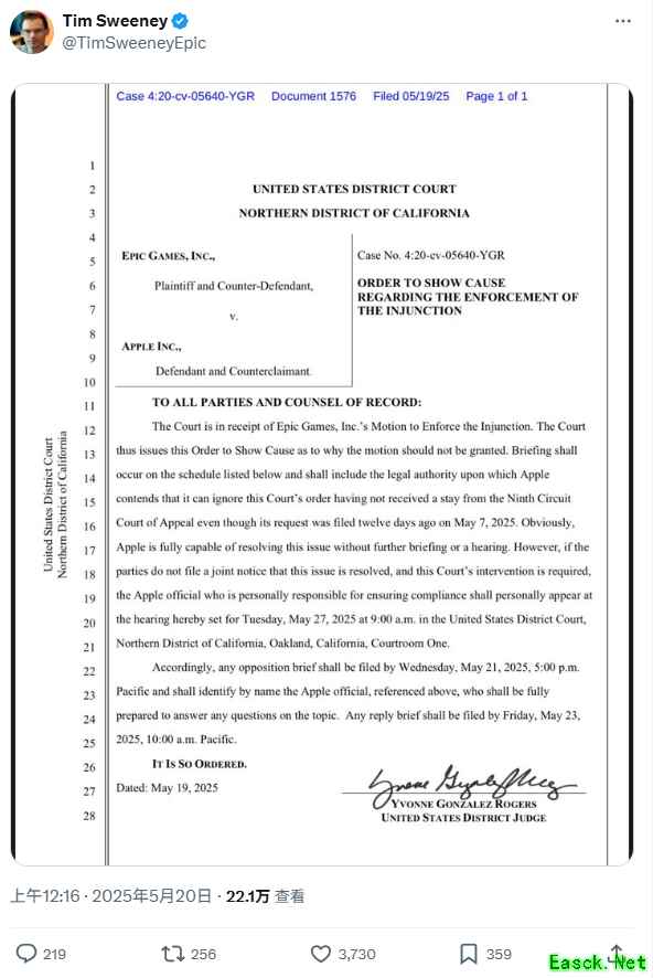 5 月 20 日消息,Epic Games 首席执行官 Tim Sweeney 最近向法院提交的新文件显示,其旗下热门游...