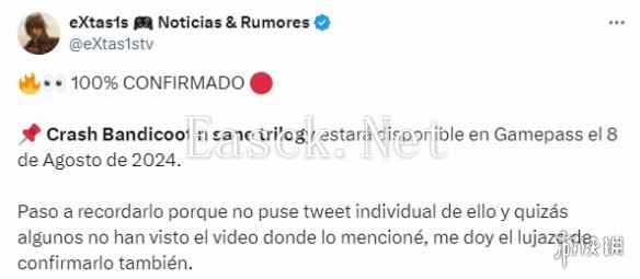 - 舅舅党爆料《古惑狼三部曲》即将于8月8日加入XGP!