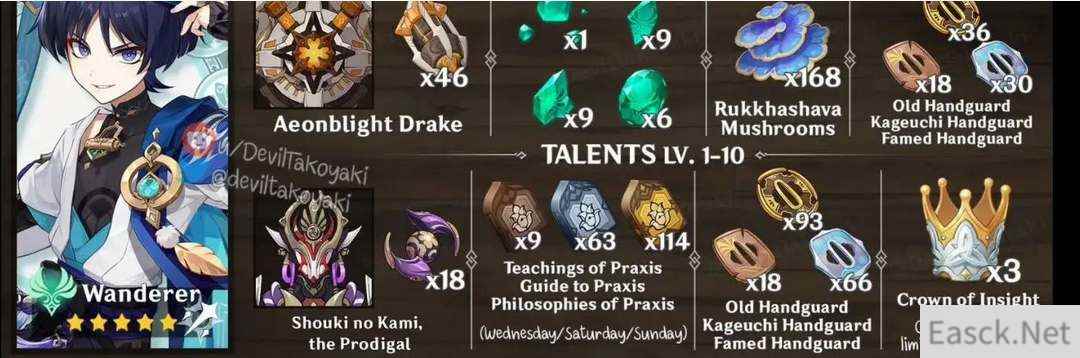 - 原神流浪者天赋升级材料一览