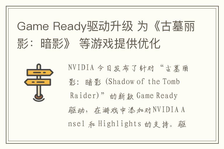 - Game Ready驱动升级 为《古墓丽影:暗影》 等游戏提供优化