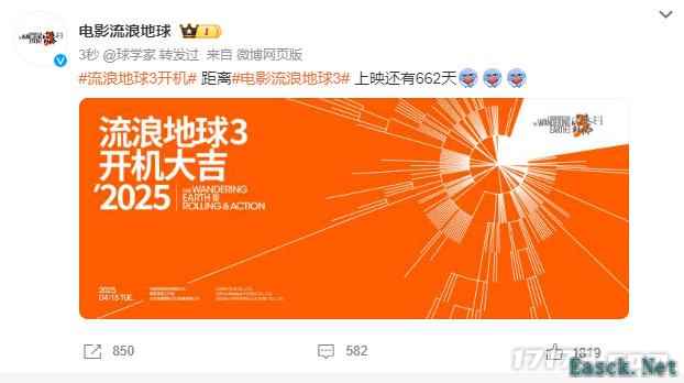 - 《流浪地球3》今日正式开机拍摄!距离电影上映还有662天