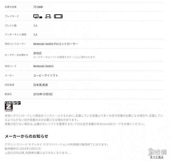 - Switch版《刺客信条:奥德赛》将于10月31日下架停售