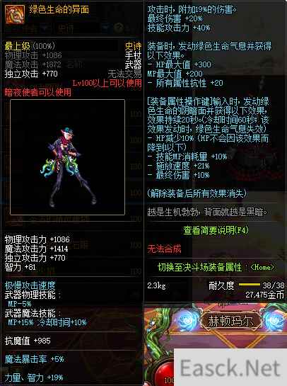 - 《DNF》暗夜使者100级史诗武器绿色生命的面容推荐