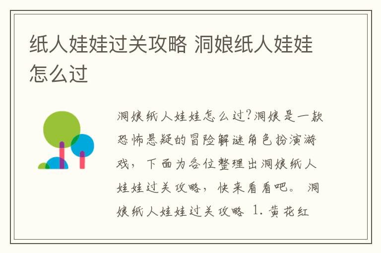 - 纸人娃娃过关攻略 洞娘纸人娃娃怎么过