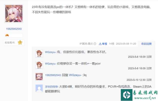 在《节奏光剑》贴吧中的一则2021年的“VR串流原理”的讨论帖楼层中,有一位VR使用者跨越了两年...