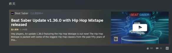 - 《节奏光剑》1.36.0版本更新 新增"嘻哈混音带"音乐包