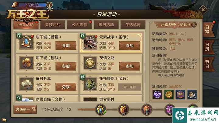- 《万王之王3D》元素战争活动介绍