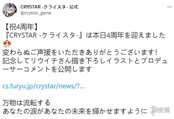 Furyu旗下动作RPG《恸哭之星(Crystar)》迎来发售四周年,官方公布了四周年纪念贺图,同时宣布...