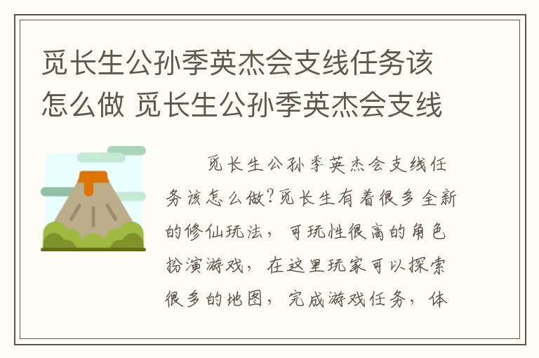 觅长生公孙季英杰会支线任务该怎么做?觅长生有着很多全新的修仙玩法,可玩性很高的角色扮...