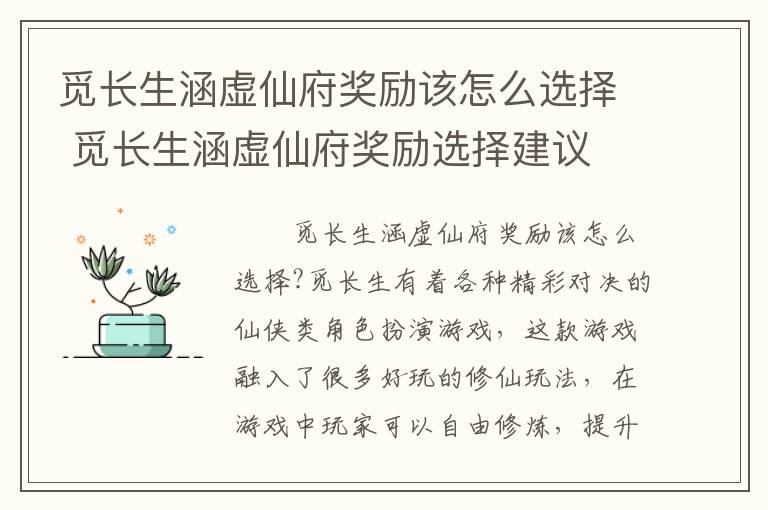觅长生涵虚仙府奖励该怎么选择?觅长生有着各种精彩对决的仙侠类角色扮演游戏,这款游戏融...