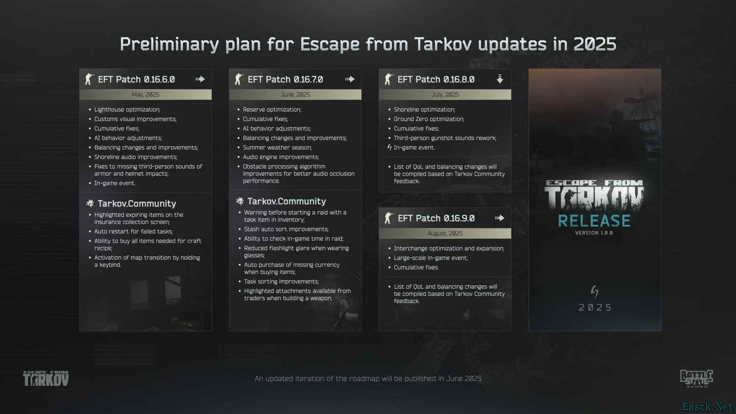 - 《逃离塔科夫》正式版预计2025年发布