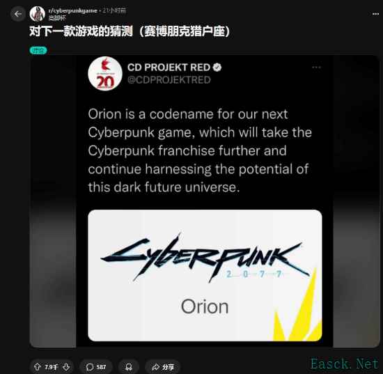 - 《赛博朋克2077》续作“猎户座计划”正式开发中