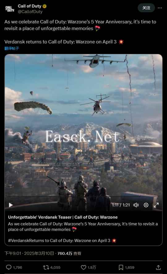 动视日前确认,《使命召唤:战区》原版地图“Verdansk”将作为《使命召唤:黑色行动6》第 3 赛季的...