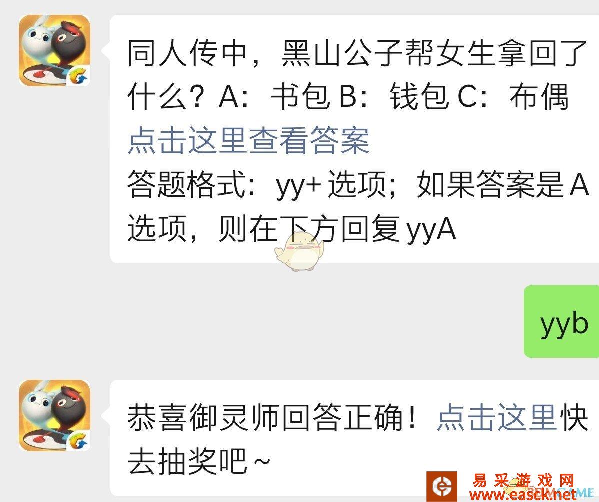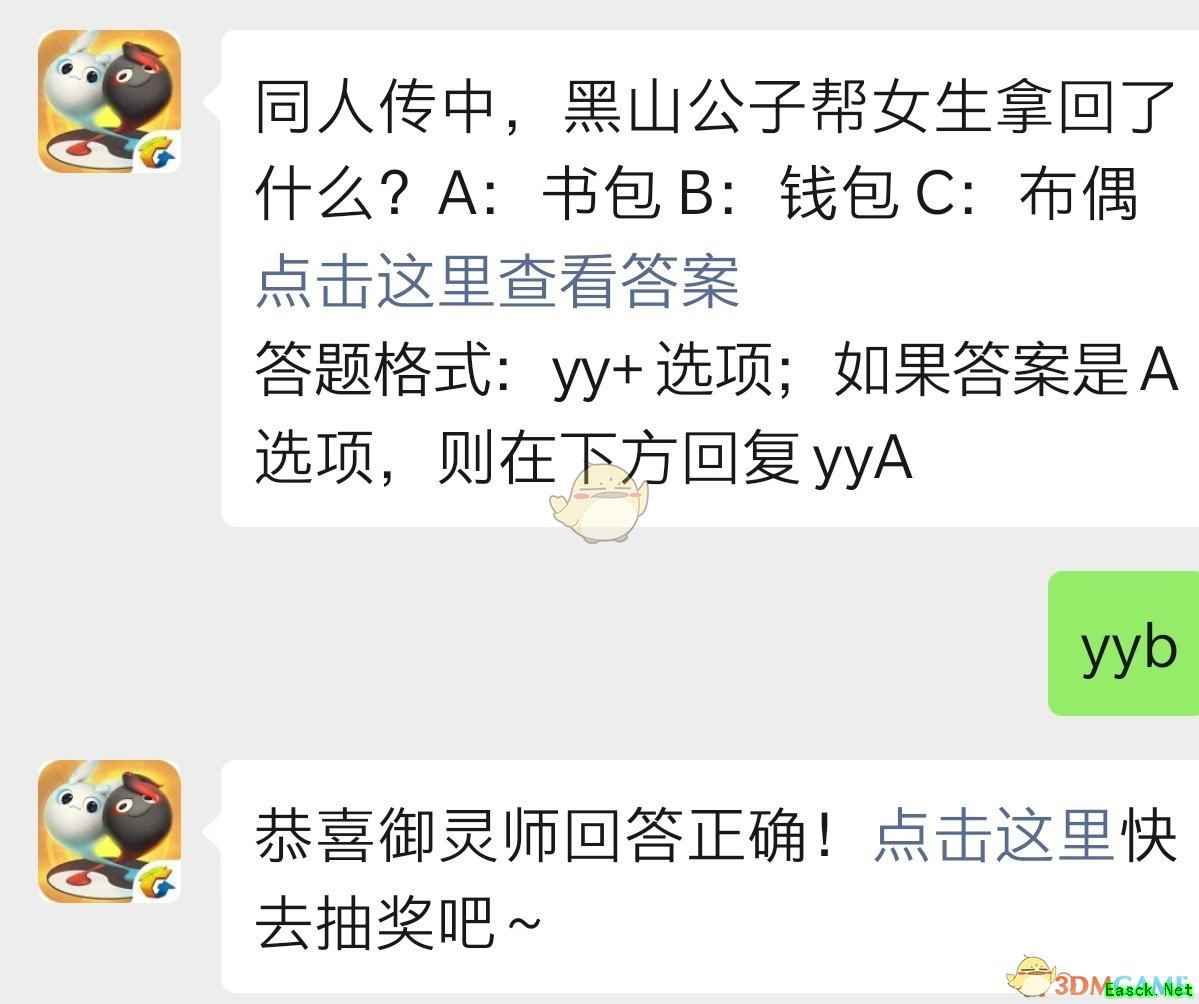 同人传中,黑山公子帮女生拿回了什么?一起来捉妖9月24每日一题更新了,各位玩家们应该还不知道答...