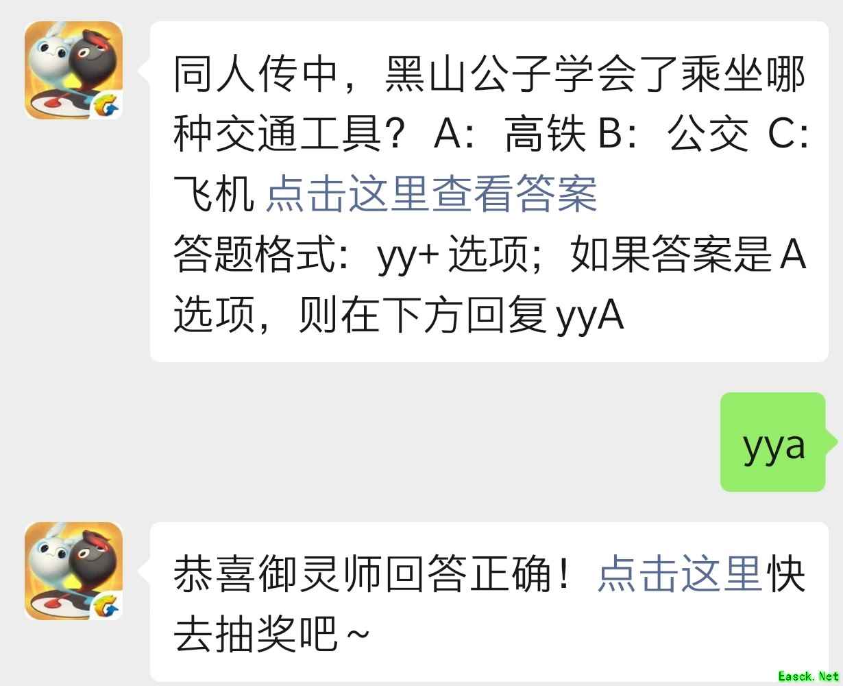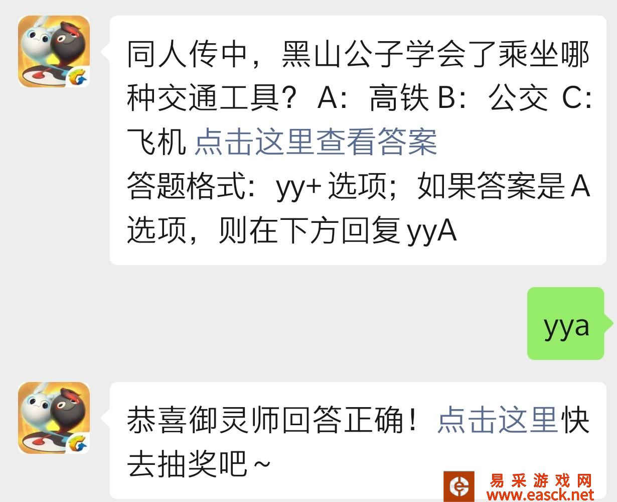 同人传中,黑山公子学会了乘坐哪种交通工具?一起来捉妖9月23每日一题更新了,各位玩家们应该还不...