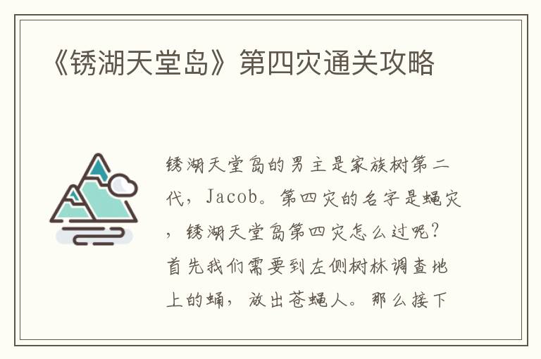 锈湖天堂岛的男主是家族树第二代,Jacob。第四灾的名字是蝇灾,锈湖天堂岛第四灾怎么过呢?首先我...