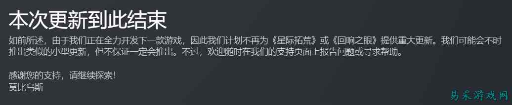 - 《星际拓荒》将停止更新 工作室新作开发中