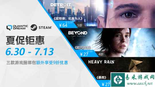 - 夏促钜惠重磅来袭!Quantic Dream旗下游戏《底特律:化身为人》《超凡双生》《暴雨》