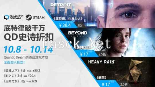 - 荣耀破千万,Quantic Dream巨献:《底特律:化身为人》《超凡双生》《暴雨》携手最低2