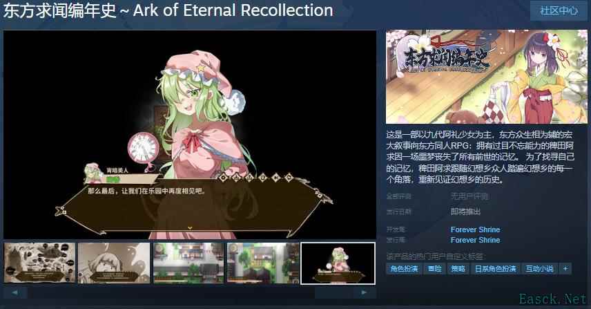 - 《东方求闻编年史》Steam页面上线,支持中文