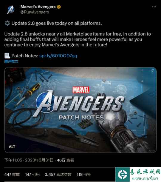 - 《漫威复仇者联盟》最终更新推出 粉丝哀叹游戏之死