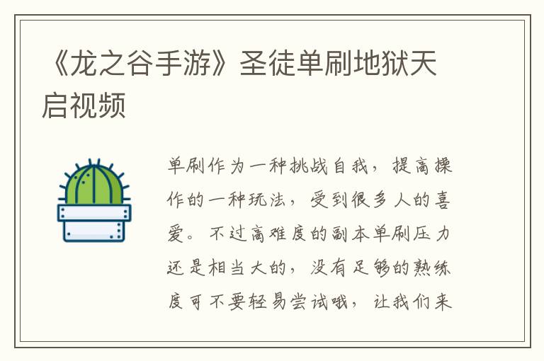 - 《龙之谷手游》圣徒单刷地狱天启视频