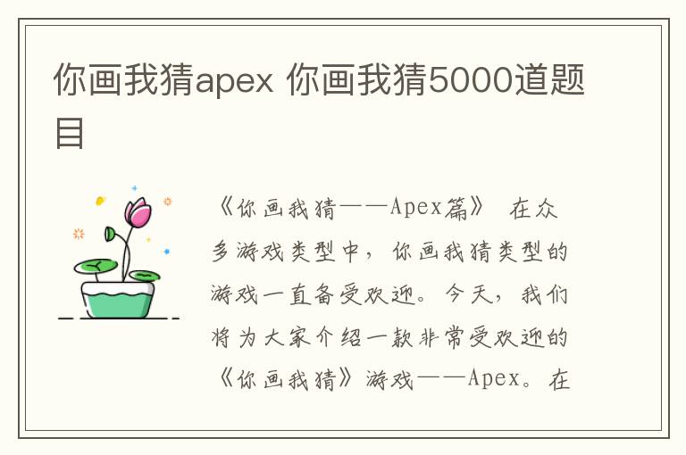 《你画我猜——Apex篇》 在众多游戏类型中,你画我猜类型的游戏一直备受欢迎。今天,我们将为大...
