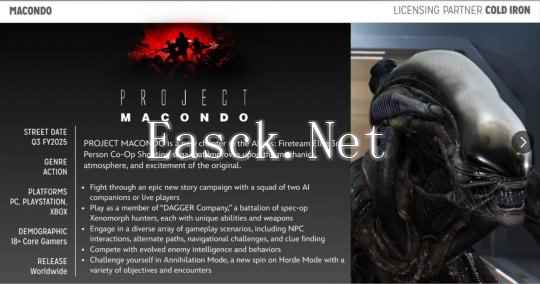- 《异形:火力小队2》泄露 计划2025年第三季度发售