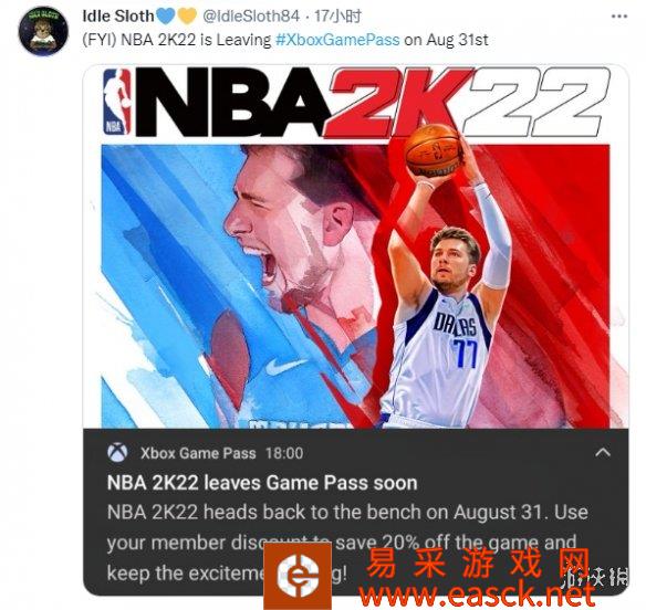 - XGP提醒用户《NBA 2K22》将在8月31号离库 但又删帖