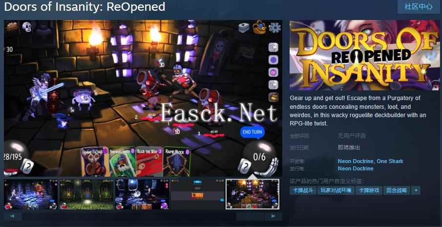 由Neon Doctrine和One Shark联合开发、Neon Doctrine负责发行的回合制卡牌对战游戏《疯狂之门:重新开张(Doors of Insanity: ReOpened)》,现已在