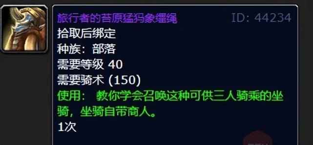 魔兽世界旅行者的苔原猛犸象怎么获得很多玩家不知道,达拉然特殊坐骑商人(58.42) 限定阵营部落。...