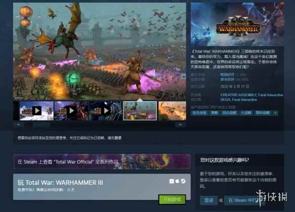 - 《全面战争:战锤3》大型更新发布 Steam在线人数飙升