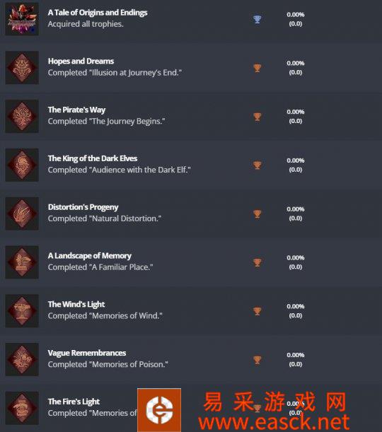 - 《最终幻想起源:天堂的陌生人》PS奖杯公开 含难度奖杯