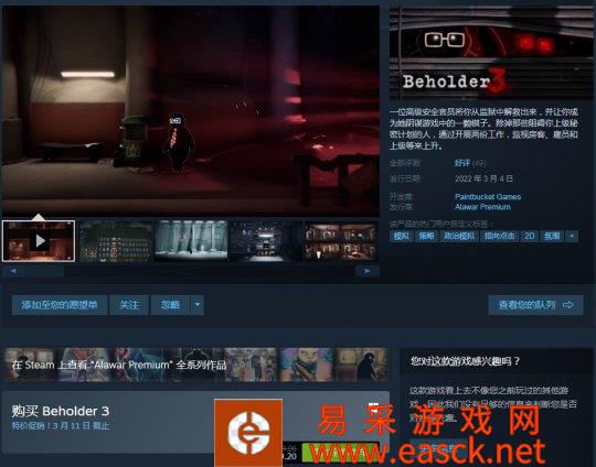 昨日(2月22日),反乌托邦游戏《旁观者3(Beholder 3)》Steam商城推出免费试玩Demo,并宣布正式版将于3...