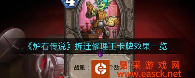 《炉石传说》游戏中拆迁修理工是新增加的一张卡牌,这是唯一一种反制地标手段的卡牌,那么今天小...