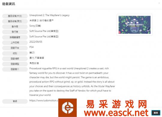 发行商 BigSugar 和开发商Ludomotion 宣布,将于 9 月 14 日为 PS4 主机发布肉鸽RPG《未探索2:旅行者的遗产》。《未探索2:旅行者的遗产》最早于 2021年 5 月 20