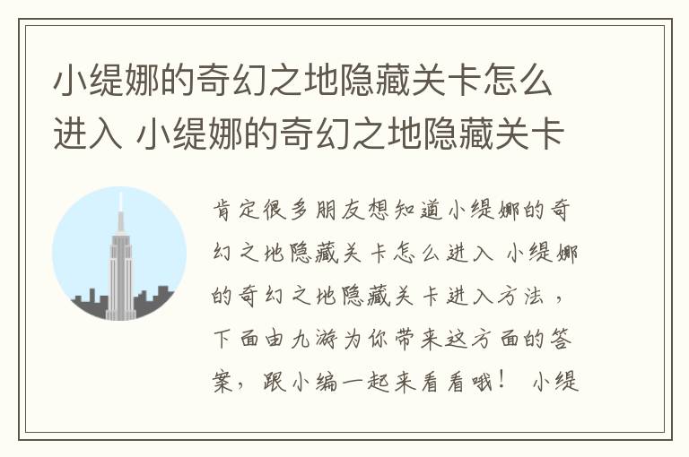小缇娜的奇幻之地隐藏关卡怎么进?有哪些方法和途径?隐藏关卡的进入是不少玩家好奇的,想知道具体...