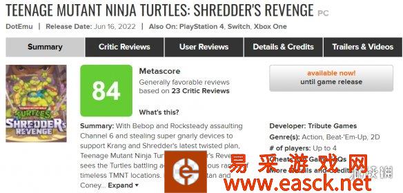 怀旧满满的清版卷轴动作游戏《忍者神龟:施莱德的复仇》PC版媒体评分已经解禁,截止至本稿发...