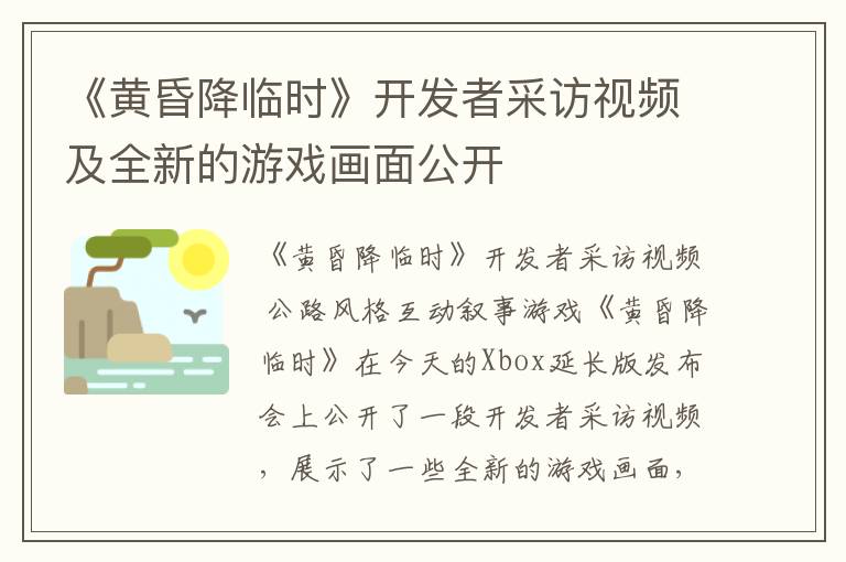 《黄昏降临时》开发者采访视频 公路风格互动叙事游戏《黄昏降临时》在今天的Xbox延长版发布...